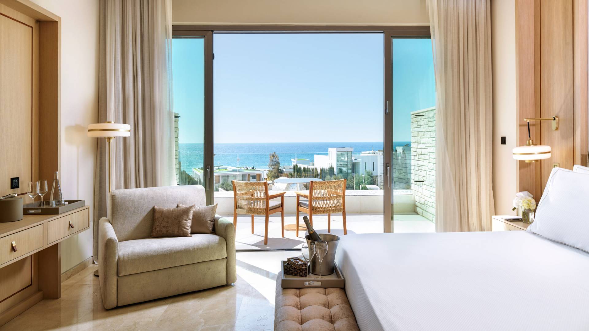 Cap St Georges Hotel & Resort redefines world-class luxury hospitality with its panoramic views of the Mediterranean sea, surrounded by lush gardens with centuries-old olive trees and captures the rich culture and landscape of the island through its architecture.