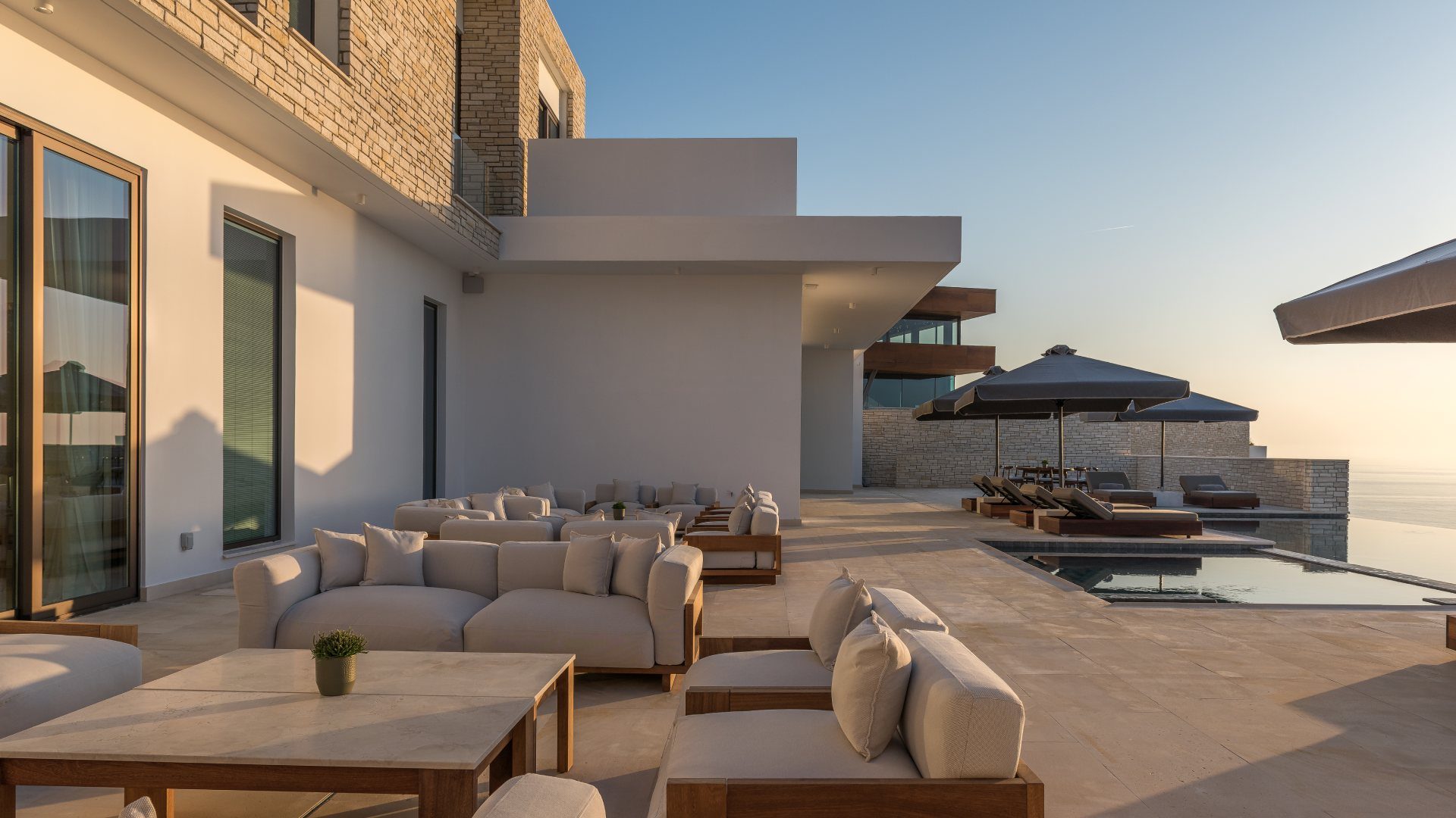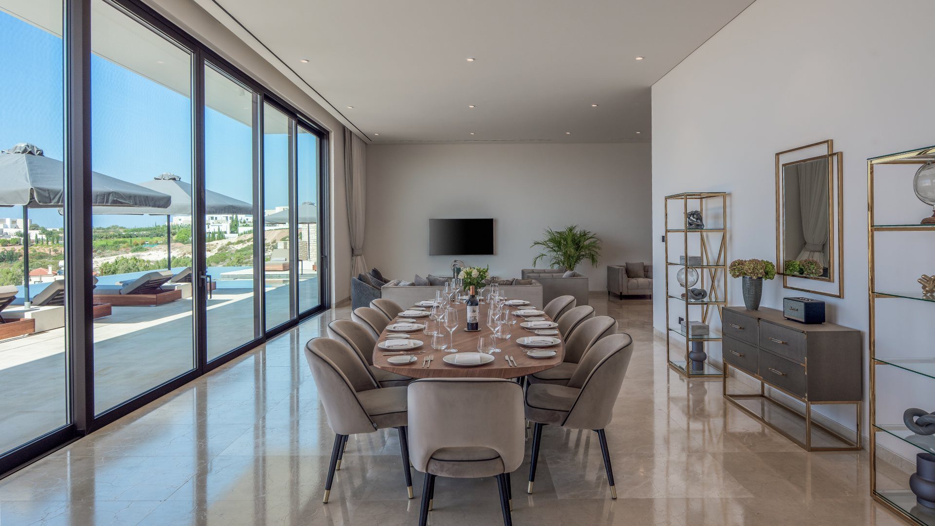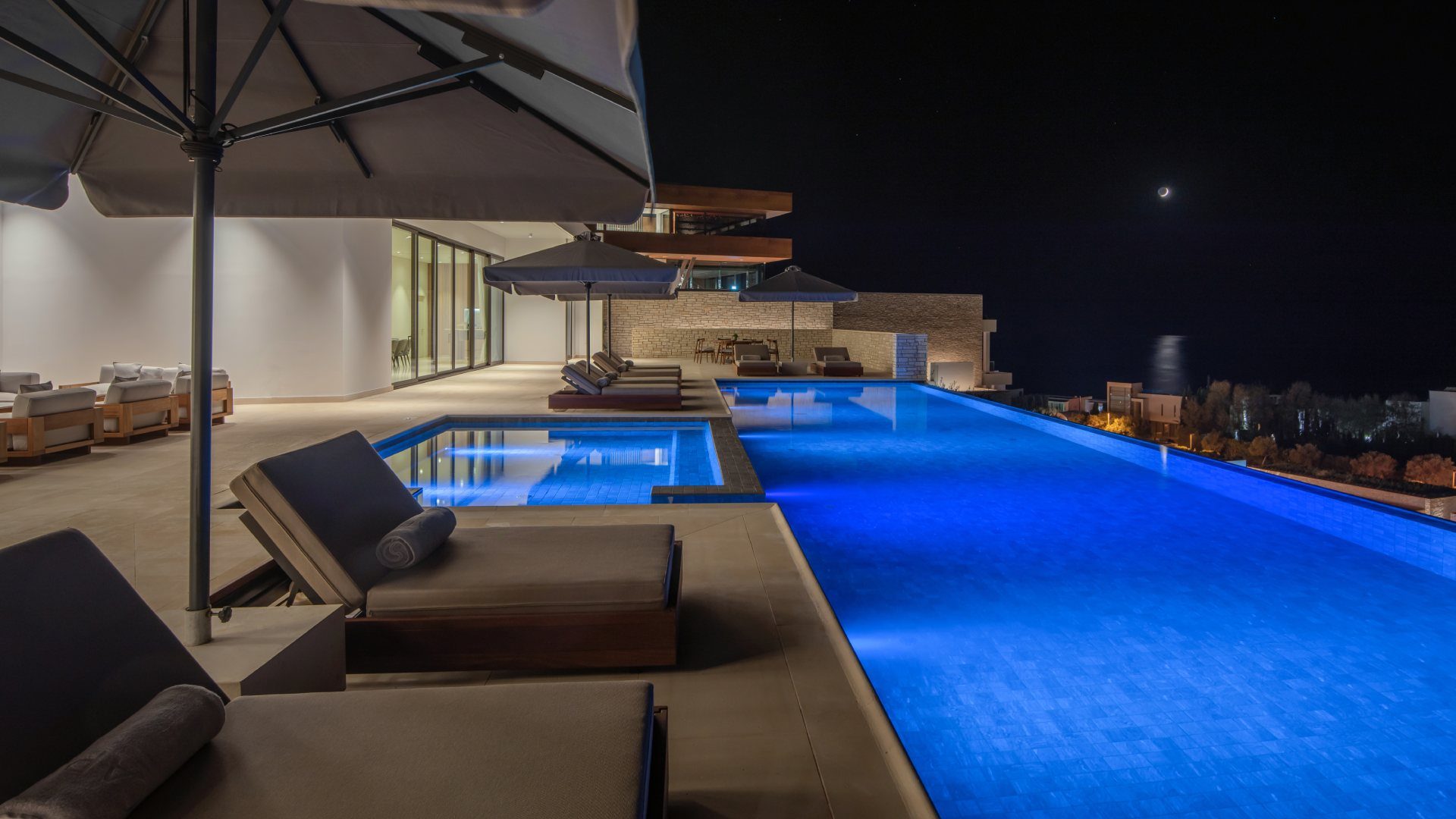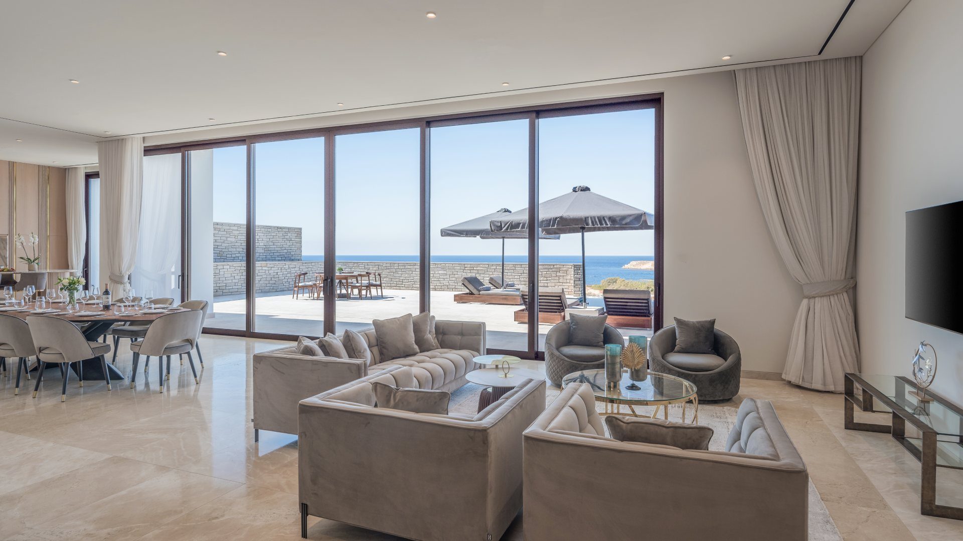 Guests can enjoy unparalleled sea views from the private infinity-edge pool with dimensions (20m x 5m), incorporated jacuzzi (6m x 4m) and extended sun terrace, while Panorama windows bring the stunning natural surroundings into the villa, creating a seamless connection between the expansive outdoor veranda and the deluxe, calming interiors. Inside, a refined design aesthetic permeates in the exquisite 7- bedroom Villa.