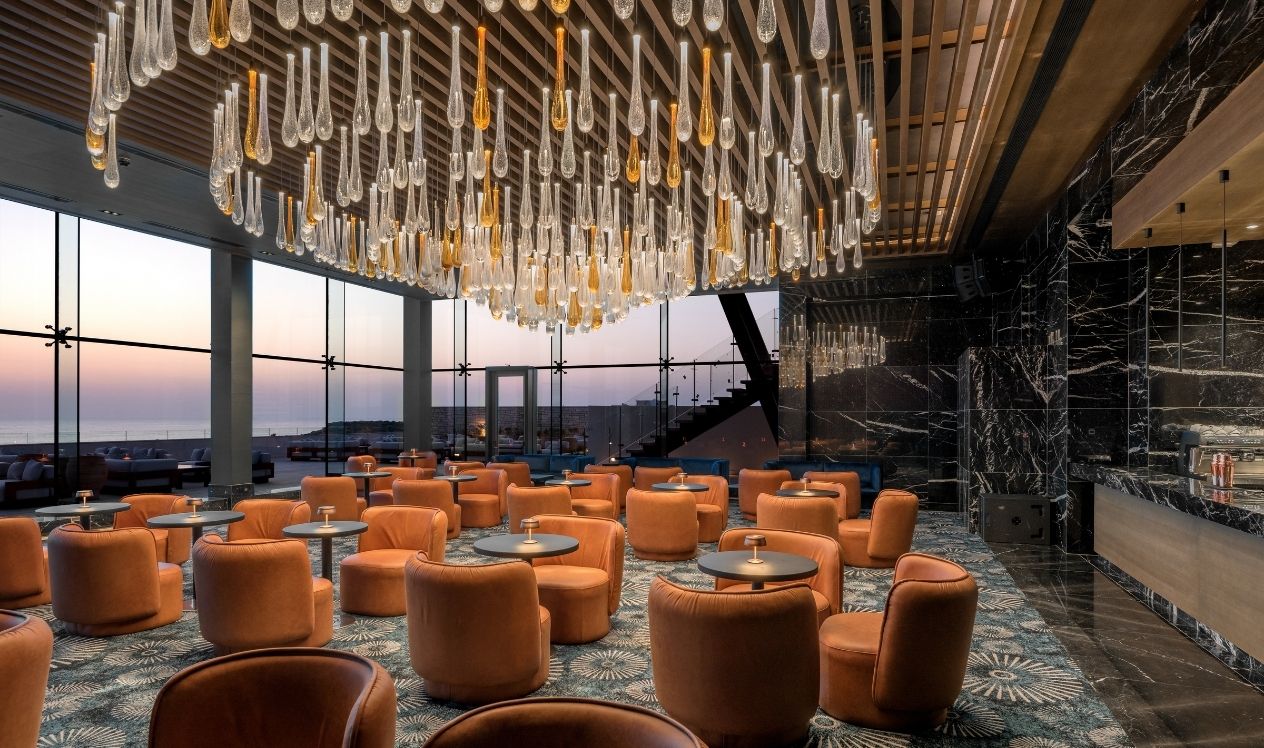 Chroma Lounge & Bar’s 180-degree views of the sea can be enjoyed from the terrace, with breath-taking panoramic sea views are complemented by exceptional design elements, with an elegant Nero Marquina marble bar and a show-stopping Lasvit chandelier. Enjoy a coffee, drink or snack at this exquisite Lounge Bar, perfect for both morning business meetings, refined afternoon teas or intimate family moments. Then, as dusk falls, enjoy the romance of beautiful sunsets accompanied by music played on an elevated grand piano or live music.